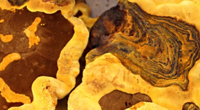 우리나라 말로는 목질 진흙버섯이라고도 하며 초기에는 진흙 덩어리가 뭉쳐진 것처럼 보이다가 다 자란 후에는 나무 그루터기에 혓바닥을 내민 모습이어서 수설이라고도 해요. 갓은 반원형, 편평형 및 둥근 산형 내지는 말굽형으로 너비 6~12㎝, 두께 2~10㎝입니다. 표면은 검은빛을 띤 갈색의 고리 홈이 나 있고 가로와 세로로 등이 갈라져요. 가장자리는 선명한 노란색이고 아랫면은 황갈색이며 살도 황갈색입니다. 해를 거듭해서 자라므로 나무의 나이테와 비슷한 경계선이 있어 이를 보고 버섯의 나이를 계산하게 되어요.