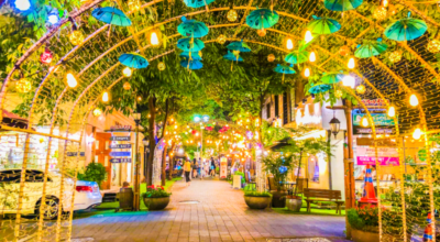용인은 이러한 테마파크들 뿐만 아니라 연인들끼리 데이트 하기 좋은 카페거리도 있답니다. 바로 보정동 카페거리입니다. 세련되고 트렌디하게 꾸며진 카페거리는 데이트 하기에 참 훌륭한 곳인데요 커다란 나무가 곳곳에 심어져 있어 자연친화적인 느낌이 드는데요. 그 나무를 중점으로 여러 꽃과 장식물들을 달아놓아 수려한 분위기를 연출해내고 있답니다. 맛집과 카페도 풍부하기 때문에 연속적으로 사랑받는 거리로 자리잡고 있답니다.