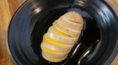 신선한 계란 6개 간장 3 큰 술 물 1 컵 설탕 1 작은 술 다진 파 1 작은 술 참기름 1 작은 술