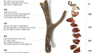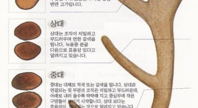 대부분이 봄·여름에 구각은 탈락되고 곧 새로 나는 뿔로서, 아직 각질이 형성되지 않아서 내부에 혈관이 있다고 하며 유연한 성질을 띠는 것을 채취하여 건조시킨 것이죠. 녹용은 산지에 따라 여러 종류가 있는데, 헤이룽 강 주변에서 많이 생산되는 중국산, 내몽골 지방에서 생산되는 몽골산, 알래스카산, 뉴질랜드산, 그리고 한국산, 일본산 등이 있답니다.