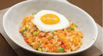 프라이팬이나 센 불로 가열합니다. 팬에 기름을 살짝 두릅니다. 마늘을 넣고 향이 날 때까지 1분간 볶아줘요. 팬에 야채와 닭가슴살 또는 돼지고기 등을 넣고 현연히 익을 때까지 볶아줍니다. 팬에 김치를 넣고 더 볶습니다. 밥을 팬에 넣고 모든 재료를 서꼬 밥이 현저히 익을 때까지 볶아줍니다. 작은 그릇에 간장과 참기름을 같이 섞어줘요.