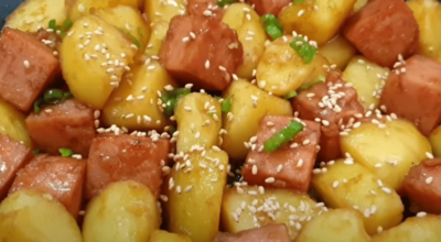 9. 통깨를 적당히 뿌려주면 감자조림 맛있게 만드는법 완성입니다.