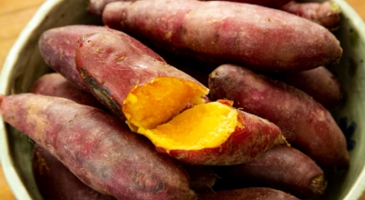 고구마의 탄수화물이 신체에 들어오면 복합당으로 변화되어 분해되기까지 시간이 길어서 포만감을 유지시켜 체중조절에 도움이 줘요. 그리고 고구마의 녹말에는 단백질의 소화를 잘되게 하고 몸속의 콜레스테롤 지수를 내려주며 식욕을 억제하는 렙틴(leptin) 호르몬의 화동성을 높여 줘요.