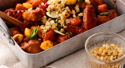 양배추에 소금을 넣어 밑간을 해주며 구운 닭을 양배추 위로 자리를 바꿔주고 양배추도 기름에 지져준다는 느낌으로 해주면 맛이 더 좋아져요. 양배추에서 나온 수분으로 말미암아 감칠맛이 더 배가 돼요. 궁중팬 뚜껑을 닫고 중불에서 10분 후 뚜껑을 열어보면 수분이 가득 양배추 국물과 닭기름으로 진하고 고소한 진국 물을 부어 끓이는 것보다 국물맛이 골고루 어우러져 진하고 맛있는 닭볶음탕 베이스가 되어주어요.