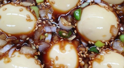 신선한 계란 6개 간장 3 큰 술 물 1 컵 설탕 1 작은 술 다진 파 1 작은 술 참기름 1 작은 술