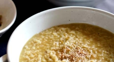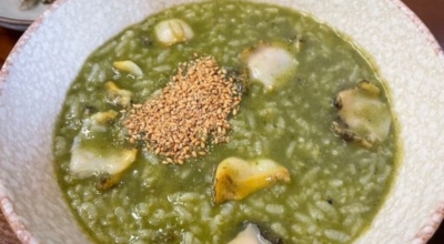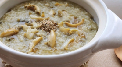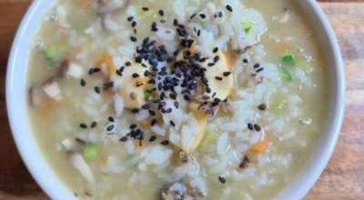중 약불로 8-10분 정도 더 끓여 줘요. 이 때에 눌어붙지 않게 저어가면서 끓여 주어요. 일정 양 걸 축한 느낌의 죽이 완성되었으면 먹기 좋게 그릇에 담아내고 전복 살을 올려 준 다음 깨와 마지막 참기름을 살짝 얹어 마무리해요. 전복죽을 먹을 때 전복살보다는 내장을 넣는 이유가 더욱더 고소하면서도 영양가가 높기 때문인데, 내장을 넣은 다음 비린내가 가시지 않는다면 처음 볶아 줄 때 소주와 함께 볶아 주는 것도 좋은 방법이라고 할 수 있답니다.