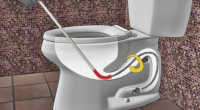 보통 철물점에서 1만원 안팎에 구입할 수 있으며 끝이 휘어진 파이프 안에 스프링 재질의 케이블이 포함되어 있어요. 사용법은 케이블을 당긴 상태에서 파이프의 휘어진 끝을 구멍에 넣고 케이블을 돌리면서 넣어주면 변기의 휘어진 곡선을 타고 들어가 최대 벽면 하수관까지 뚫어줍니다. 거기서 더 이상 안들어간다 싶으면 그곳이 배관을 막은 녀석이므로 소위 낚시를 하듯이 돌려가면서 살살 빼내주면 됩니다.