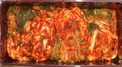 배추김치는 배추로 담근 김치다. 한국의 대표적인 반찬입니다. 소금에 절인 배추에 무채, 고춧가루, 다진 마늘, 파, 젓갈 등을 넣고 버무린 속을 넣어 담근다. 배추김치가 맛있게 익으려면 젖산균이 시큼한 젖산을 만들어 배추를 서서히 익게 만들어야 해요. 젖산균 등등의 세균과 효모균에서 발생하는 젖산·알코올·에스터 등이 맛을 돋워 주는 것입니다.