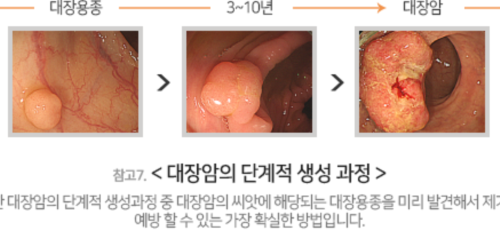 대장암을 초기에 발견해 내려면 대장내시경은 반드시 필요한데요 적어도 2년에 한 번 대장내시경을 받아 이상이 없나 확인해 봐야 합니다.CT촬영으로 혹이 보이거나 하는 경우가 있는데요, 사실 초기에 CT로 혹을 잡아내기는 매우 힘들다고 합니다. 가장 정확한 건 의사가 눈으로 볼 수 있는 대장내시경이니 건강검진시 반드시 받으시기 바랍니다.